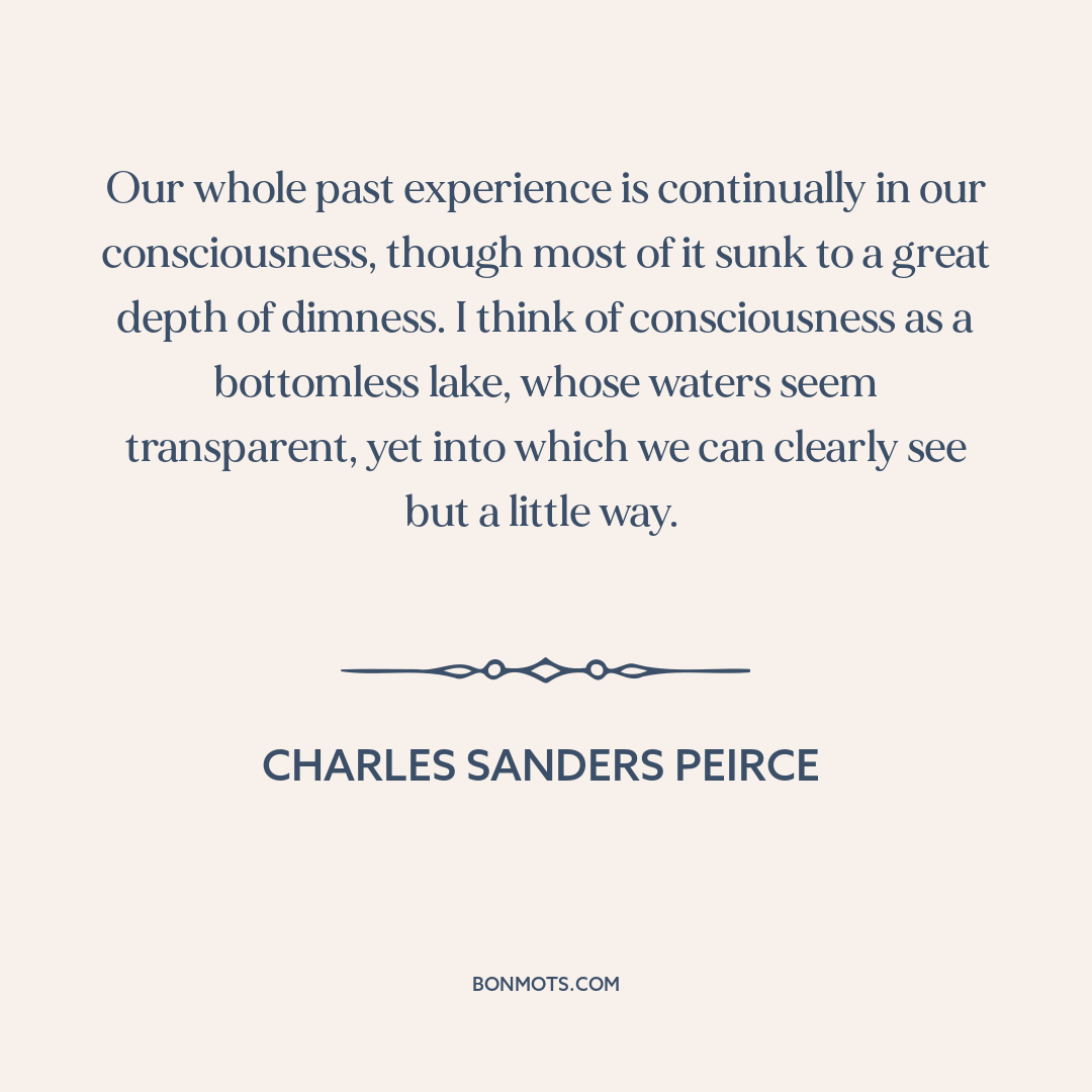 Our whole past experience is continually in our consciousness, though most of it sunk to a great depth of dimness. I think of consciousness as a bottomless lake, whose waters seem transparent, yet into which we can clearly see but a little way.
