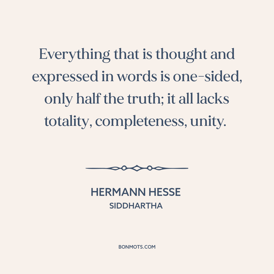 Everything that is thought and expressed in words is one-sided, only half the truth; it all lacks totality, completeness, unity.