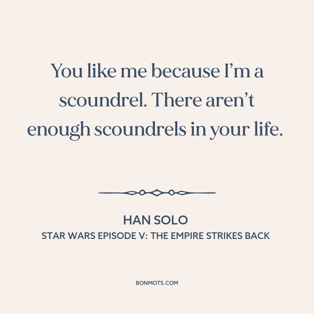 You like me because I’m a scoundrel. There aren’t enough scoundrels in your life.