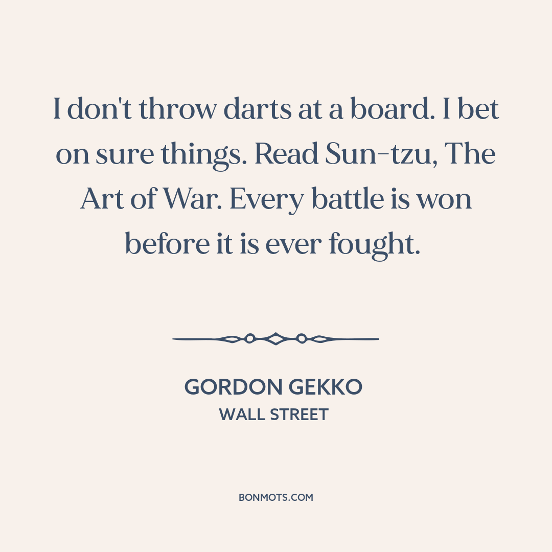 I don't throw darts at a board. I bet on sure things. Read Sun-tzu, The Art of War. Every battle is won before it is ever fought.