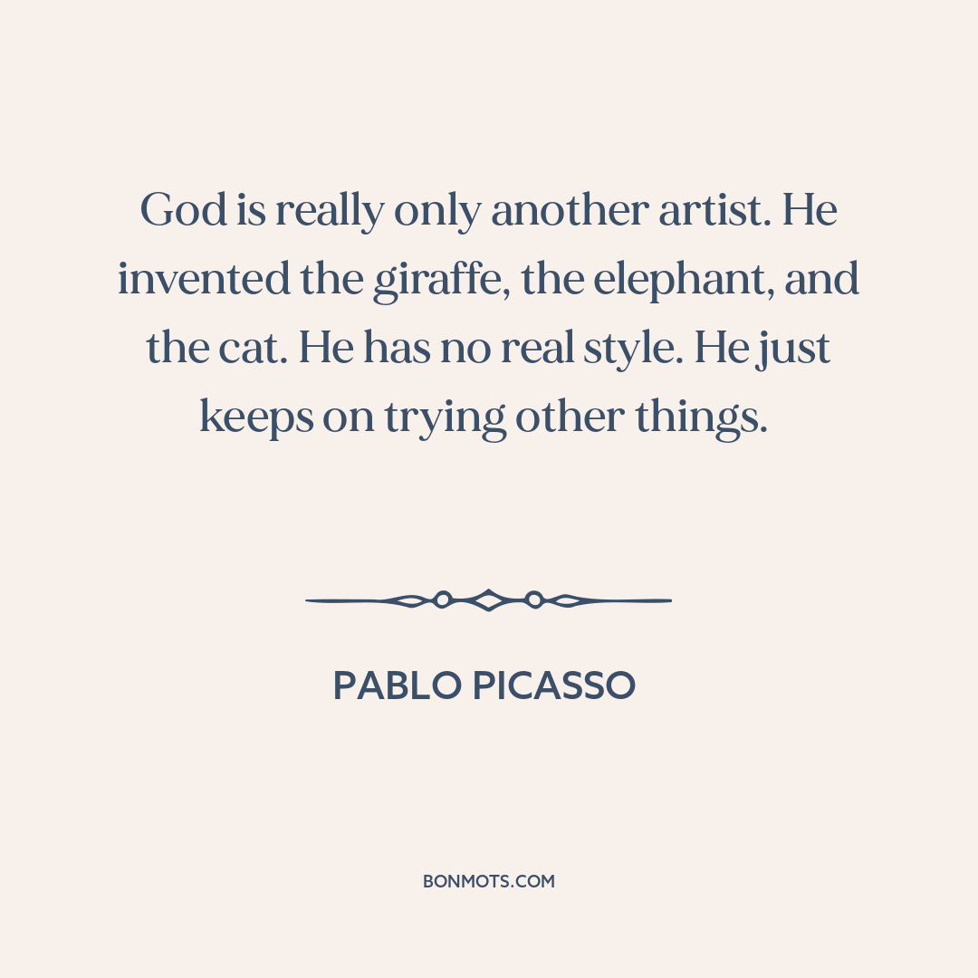 God is really only another artist. He invented the giraffe, the elephant, and the cat. He has no real style. He just keeps on trying other things.