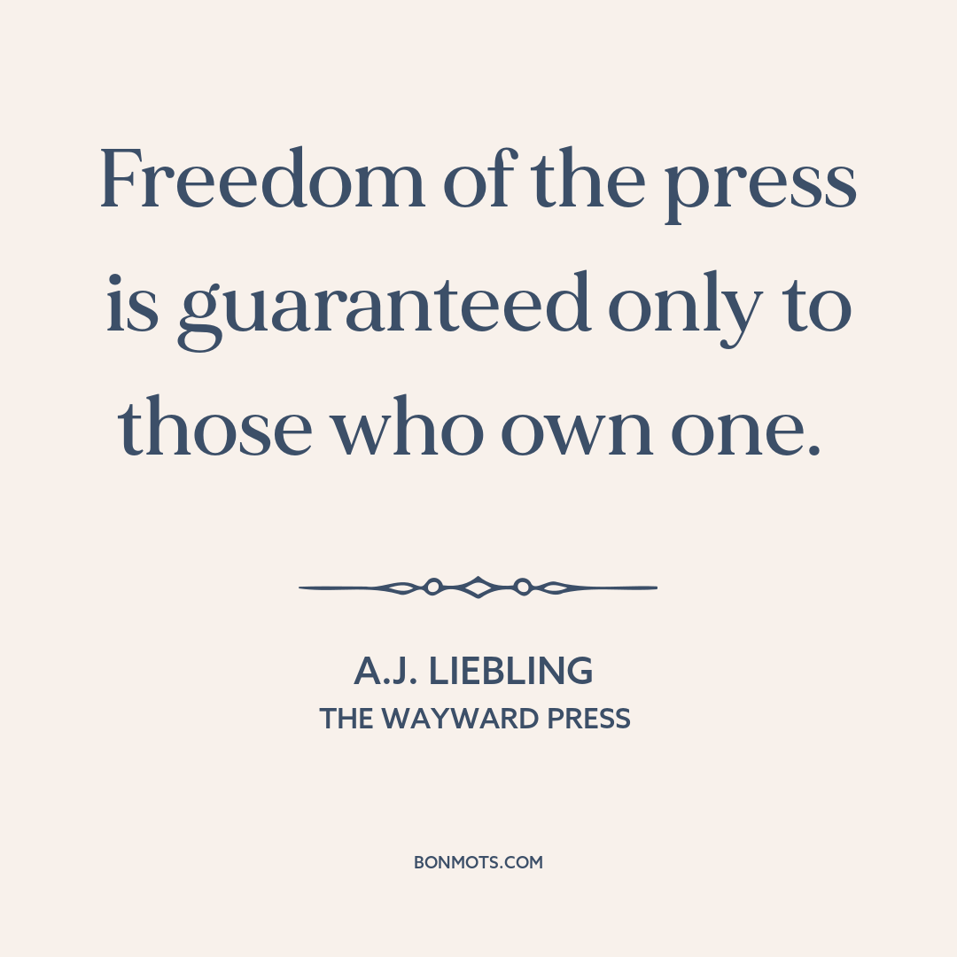 Freedom of the press is guaranteed only to those who own one.