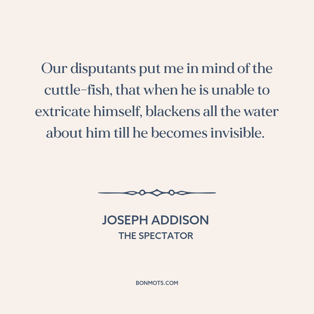 Our disputants put me in mind of the cuttle-fish, that when he is unable to extricate himself, blackens all the water about him till he becomes invisible.