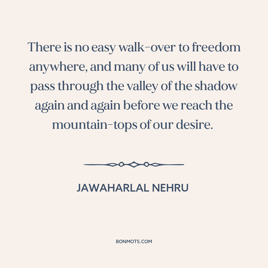 There is no easy walk-over to freedom anywhere, and many of us will have to pass through the valley of the shadow again and again before we reach the mountain-tops of our desire.