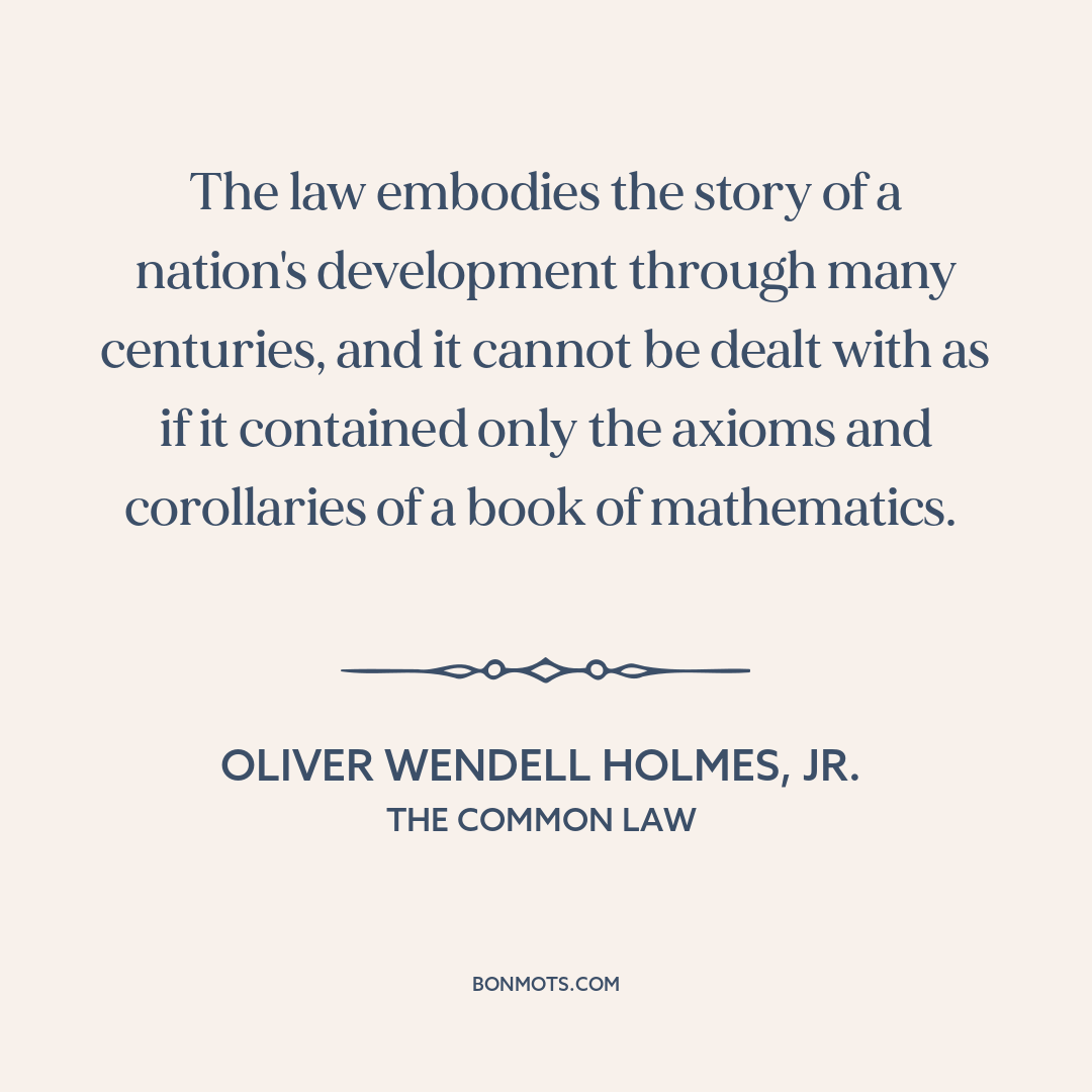 The law embodies the story of a nation's development through many centuries, and it cannot be dealt with as if it contained only the axioms and corollaries of a book of mathematics.