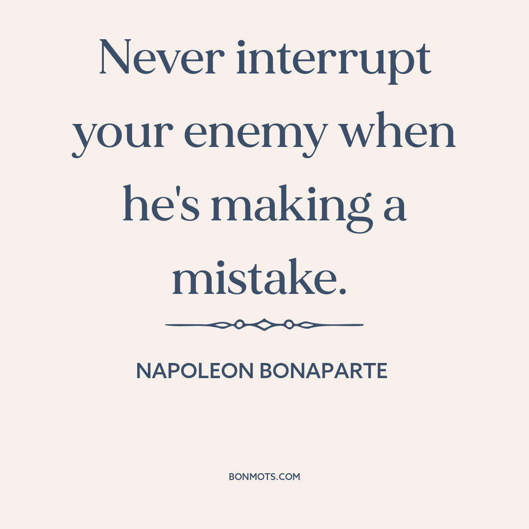 Never interrupt your enemy when he's making a mistake.