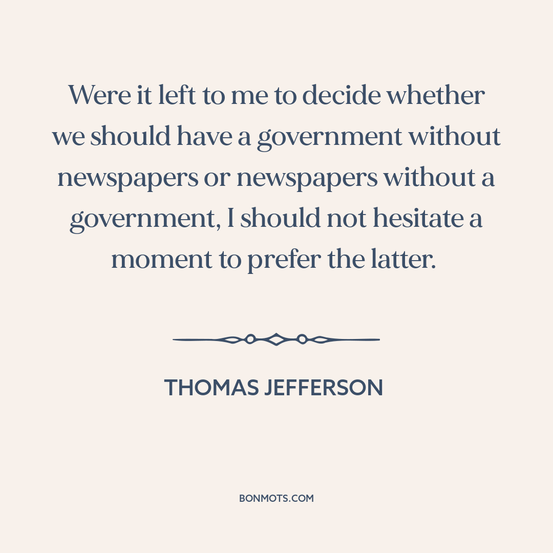 Were it left to me to decide whether we should have a government without newspapers or newspapers without a government, I should not hesitate a moment to prefer the latter.