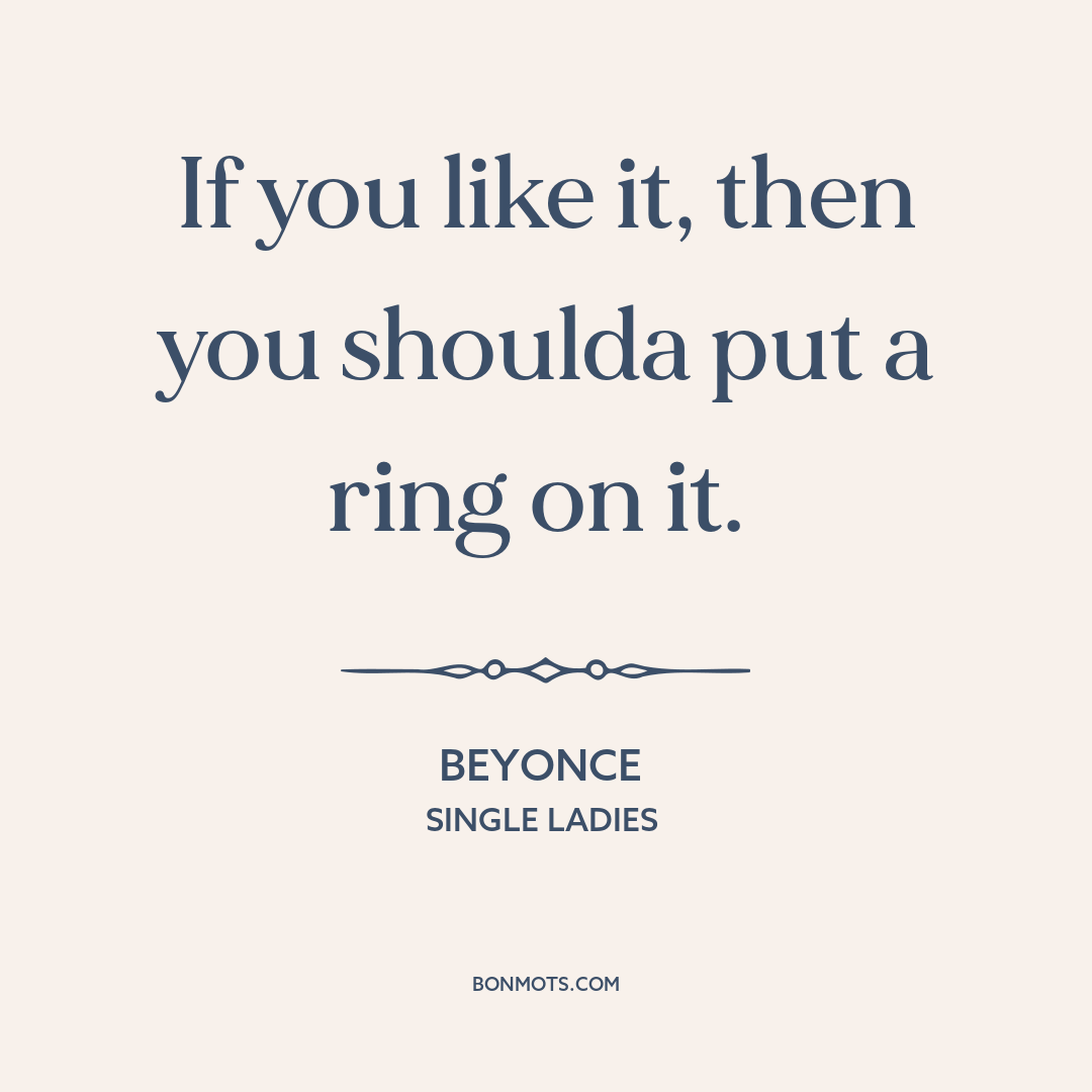 Beyonce. "Single Ladies (Put a Ring on It)." Cowritten with Terius Nash and Thaddis Harrell and Christopher Stewart. Performed by Beyonce. I Am... Sasha Fierce. Columbia Records, 2008.