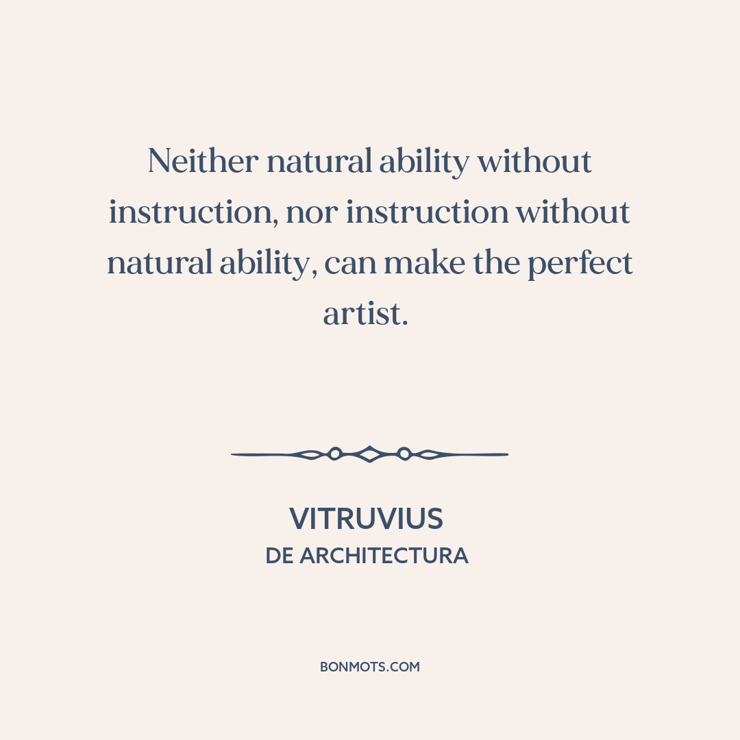 Neither natural ability without instruction, nor instruction without natural ability, can make the perfect artist.