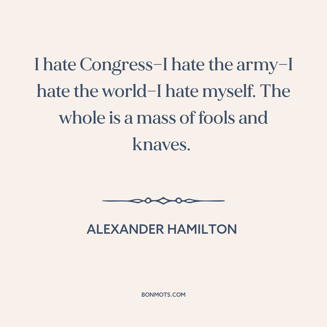 I hate Congress—I hate the army—I hate the world—I hate myself. The whole is a mass of fools and knaves.