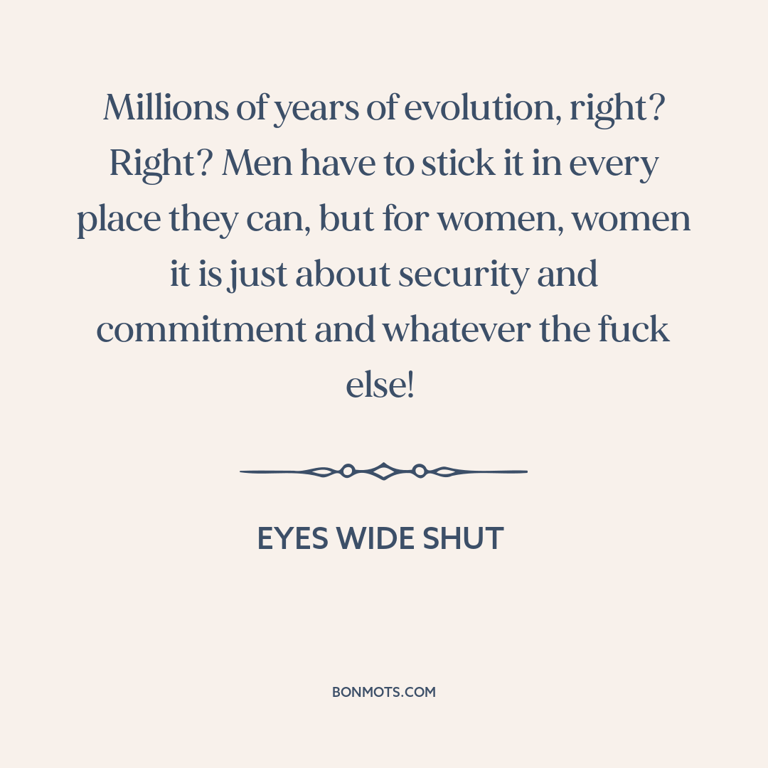 Millions of years of evolution, right? Right? Men have to stick it in every place they can, but for women, women it is just about security and commitment and whatever the fuck else!