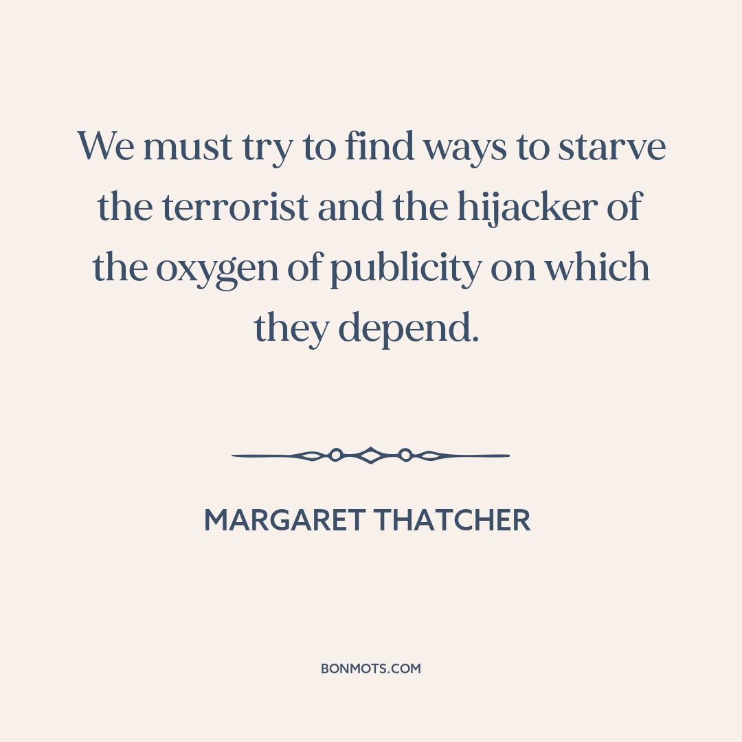 We must try to find ways to starve the terrorist and the hijacker of the oxygen of publicity on which they depend.