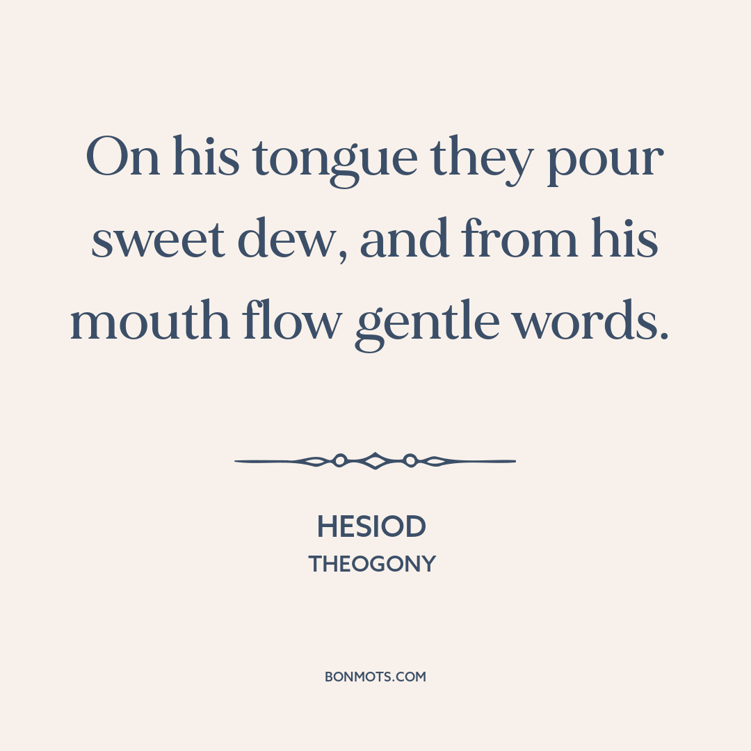 On his tongue they pour sweet dew, and from his mouth flow gentle words.