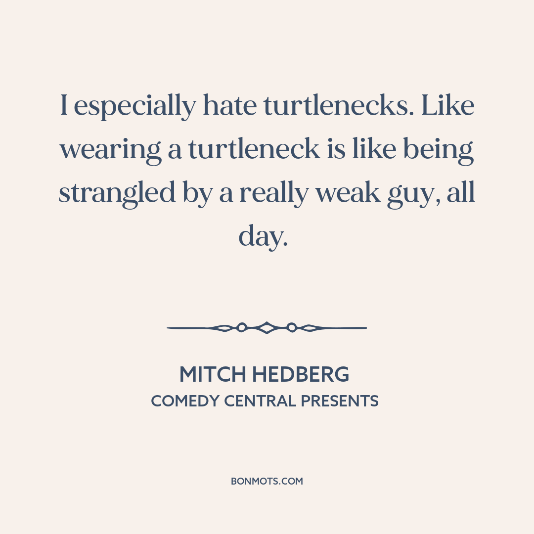 I especially hate turtlenecks. Like wearing a turtleneck is like being strangled by a really weak guy, all day.