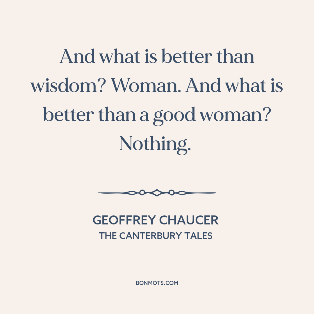 And what is better than wisdom? Woman. And what is better than a good woman? Nothing.