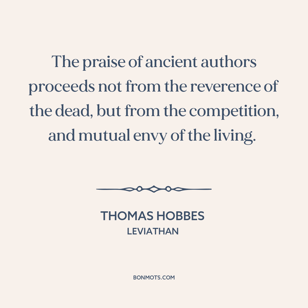 The praise of ancient authors proceeds not from the reverence of the dead, but from the competition, and mutual envy of the living.