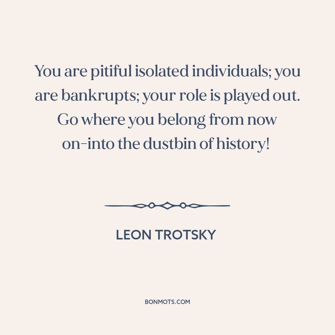 You are pitiful isolated individuals; you are bankrupts; your role is played out. Go where you belong from now on-into the dustbin of history!