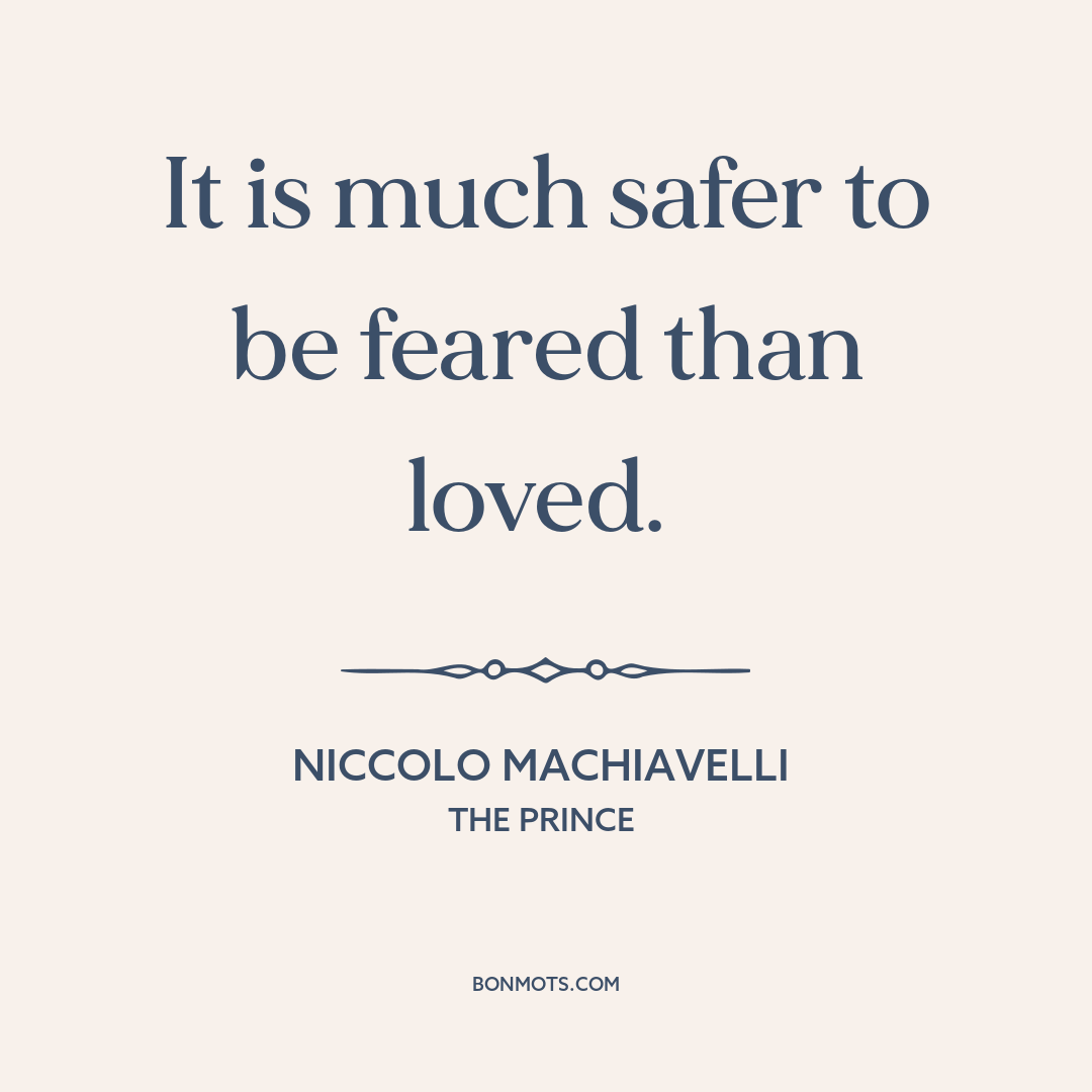 It is much safer to be feared than loved.
