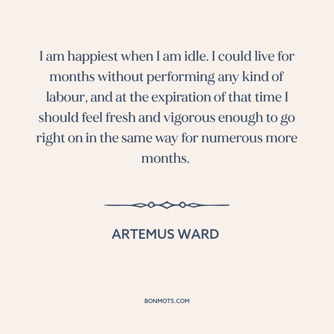 I am happiest when I am idle. I could live for months without performing any kind of labour, and at the expiration of that time I should feel fresh and vigorous enough to go right on in the same way for numerous more months.
