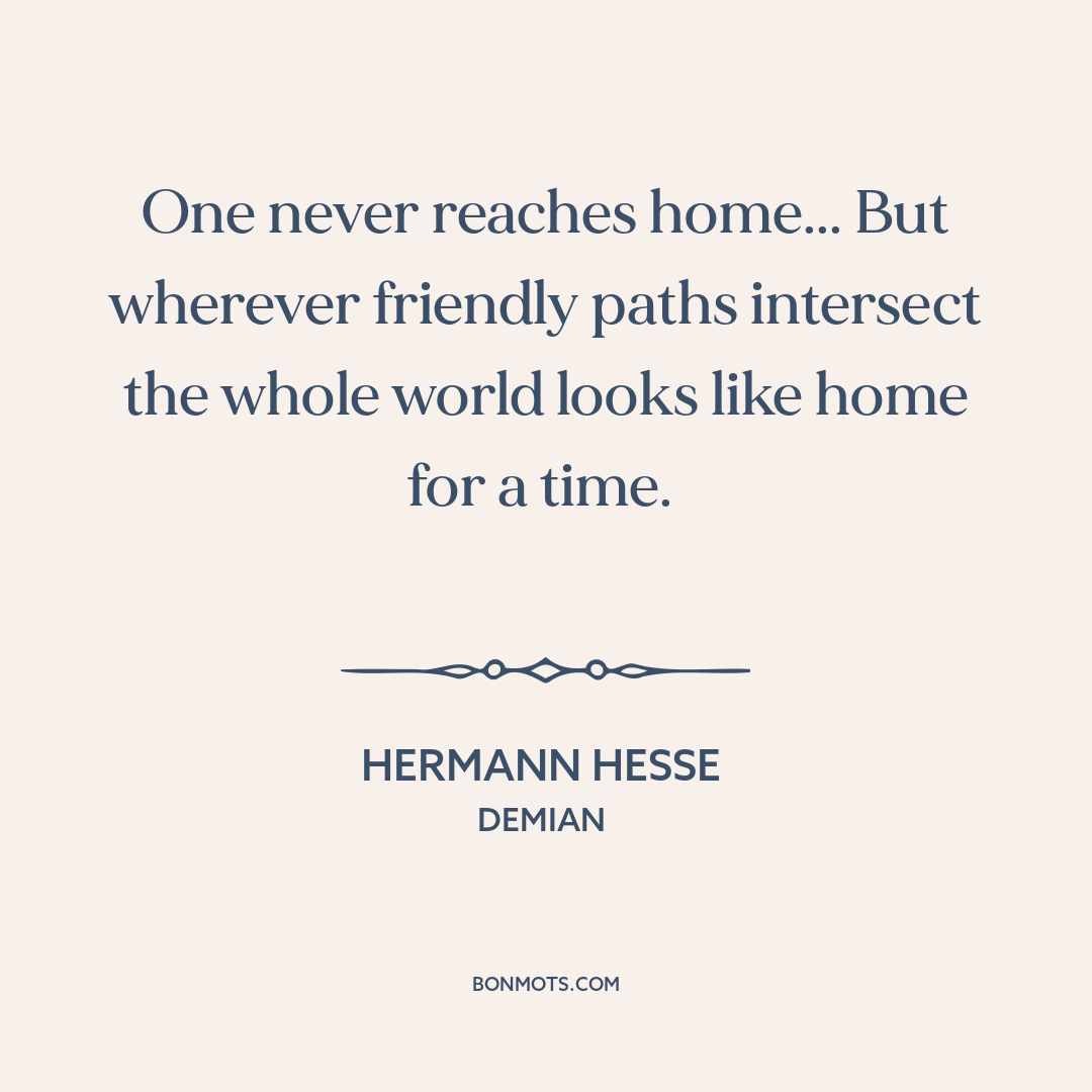 One never reaches home... But wherever friendly paths intersect the whole world looks like home for a time.