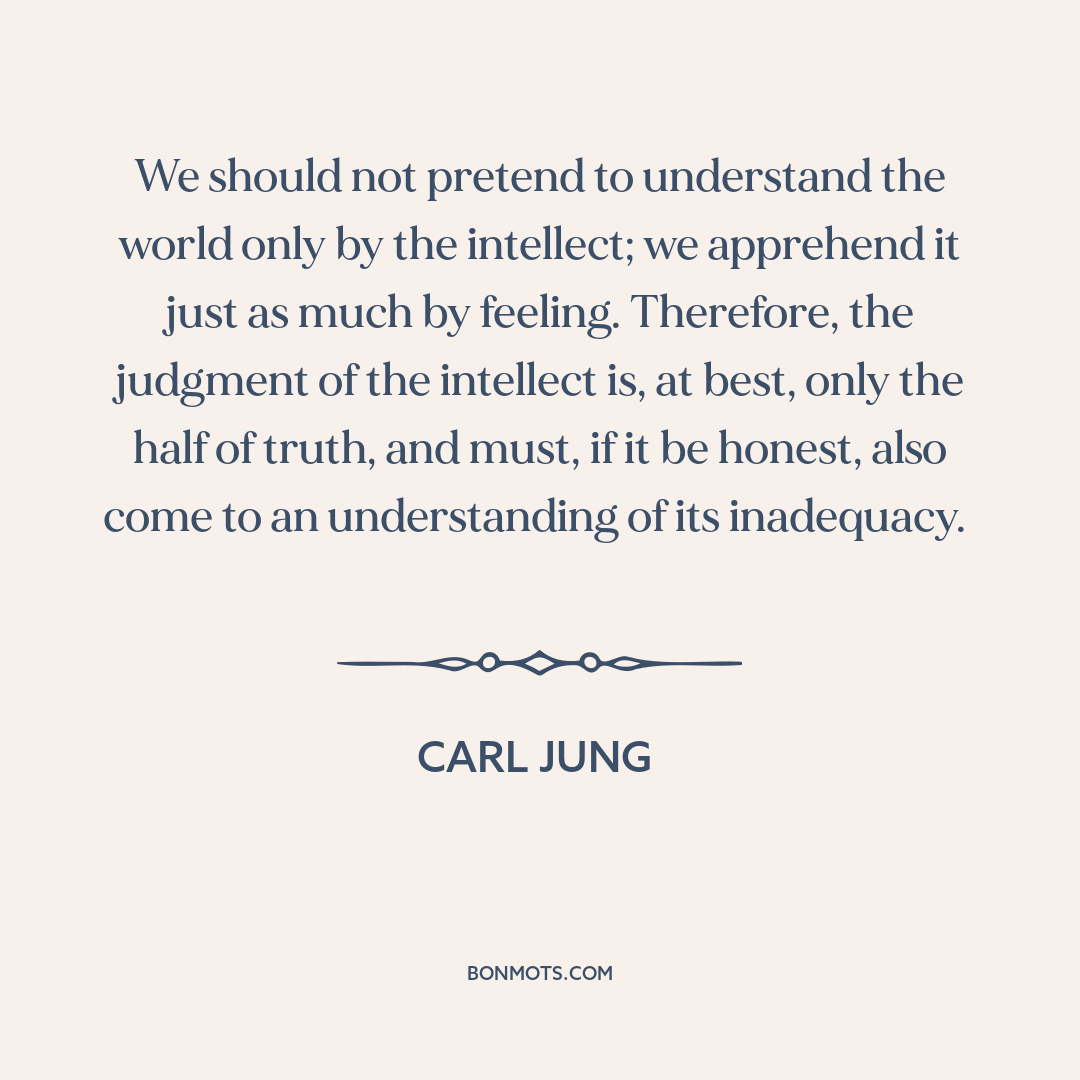 We should not pretend to understand the world only by the intellect; we apprehend it just as much by feeling. Therefore, the judgment of the intellect is, at best, only the half of truth, and must, if it be honest, also come to an understanding of its inadequacy.