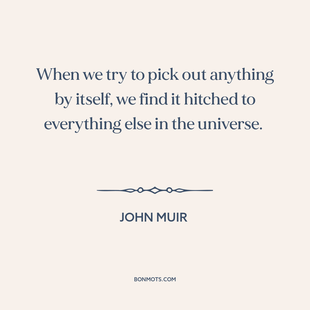 When we try to pick out anything by itself, we find it hitched to everything else in the universe.