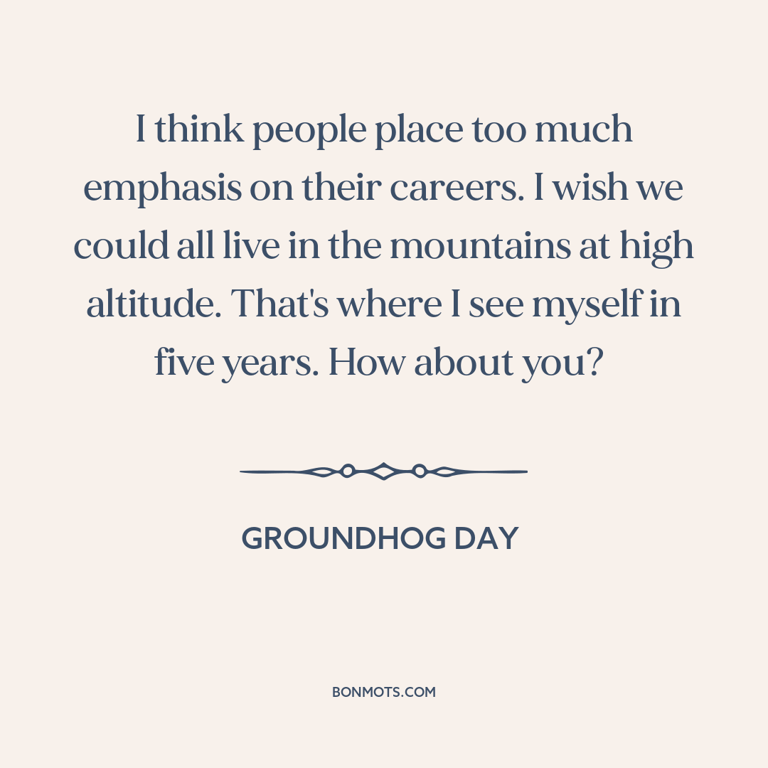 I think people place too much emphasis on their careers. I wish we could all live in the mountains at high altitude. That's where I see myself in five years. How about you?