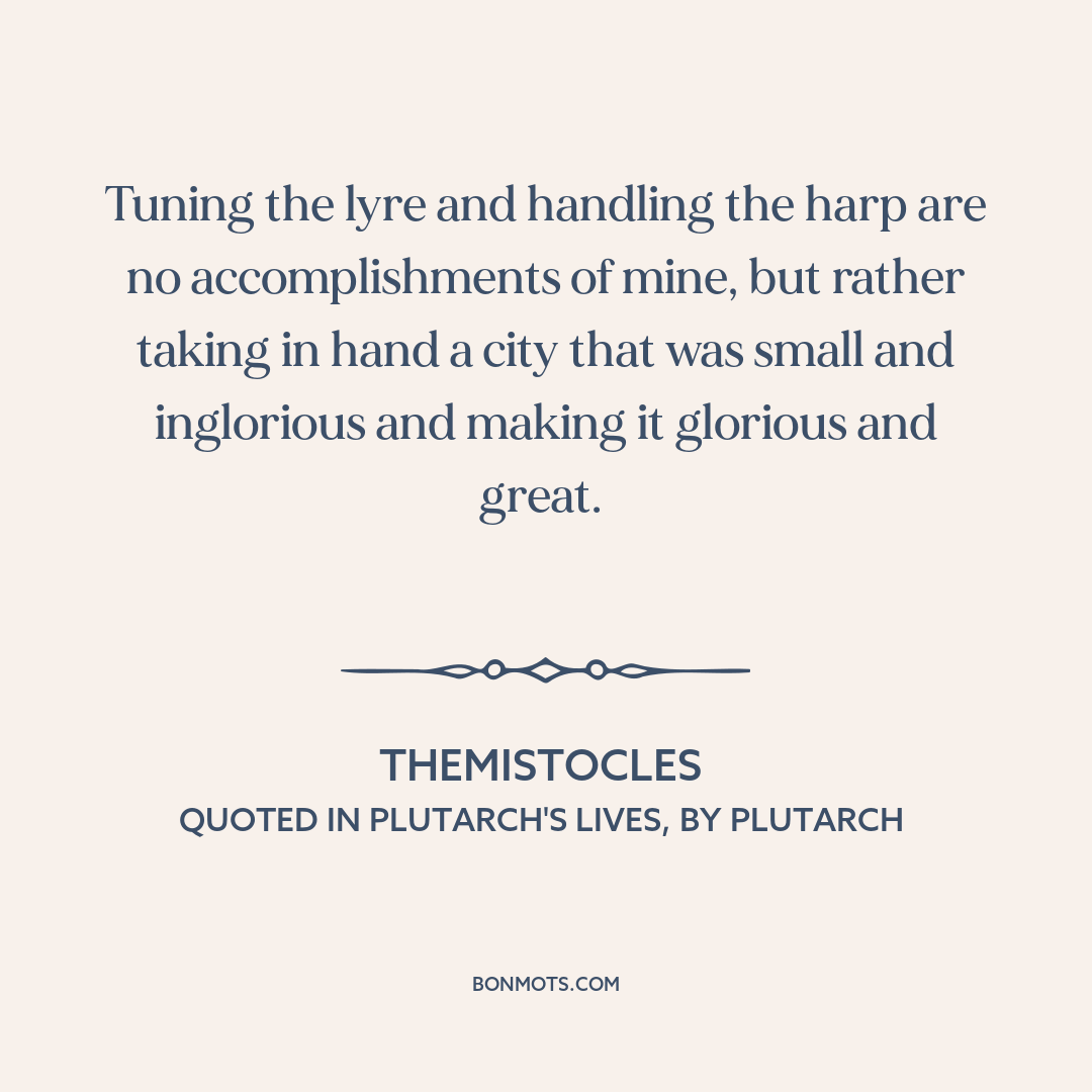 Tuning the lyre and handling the harp are no accomplishments of mine, but rather taking in hand a city that was small and inglorious and making it glorious and great.