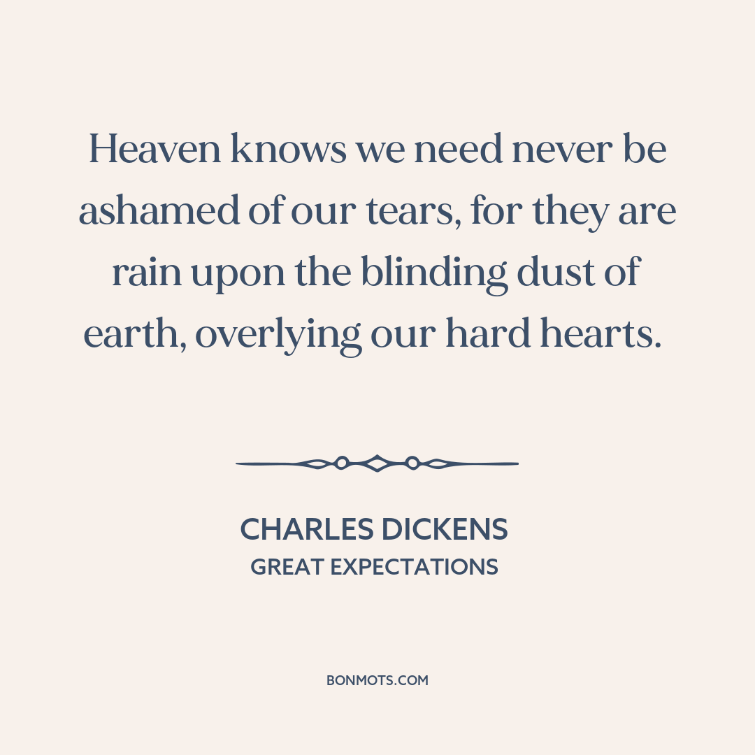 Heaven knows we need never be ashamed of our tears, for they are rain upon the blinding dust of earth, overlying our hard hearts.