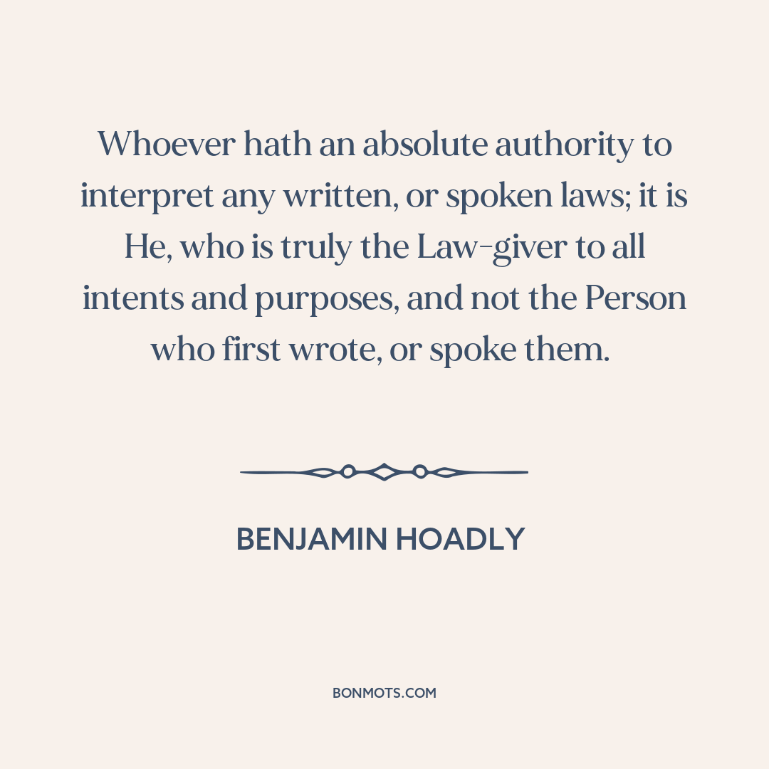 Whoever hath an absolute authority to interpret any written, or spoken laws; it is He, who is truly the Law-giver to all intents and purposes, and not the Person who first wrote, or spoke them.