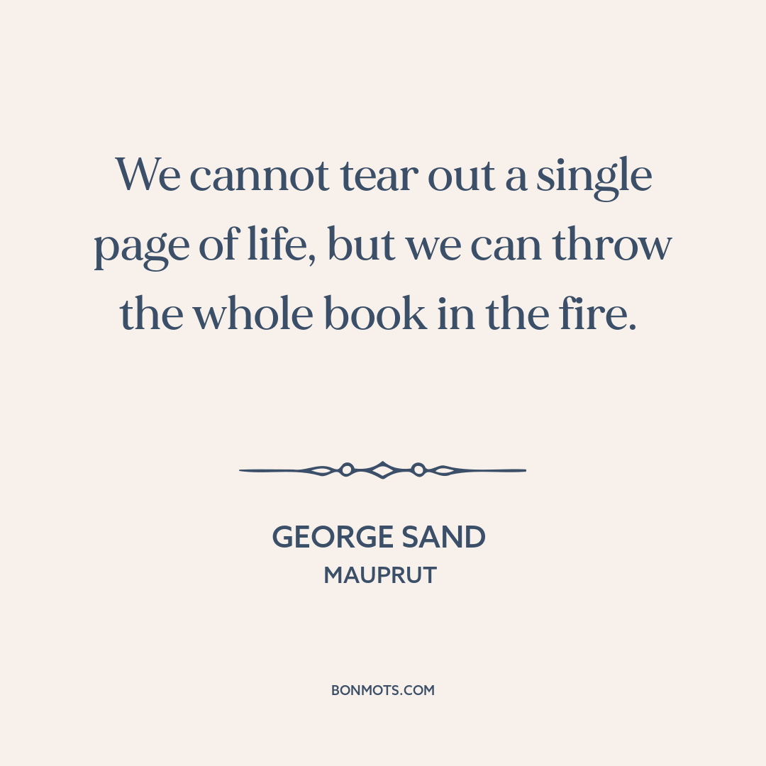 We cannot tear out a single page of life, but we can throw the whole book in the fire.