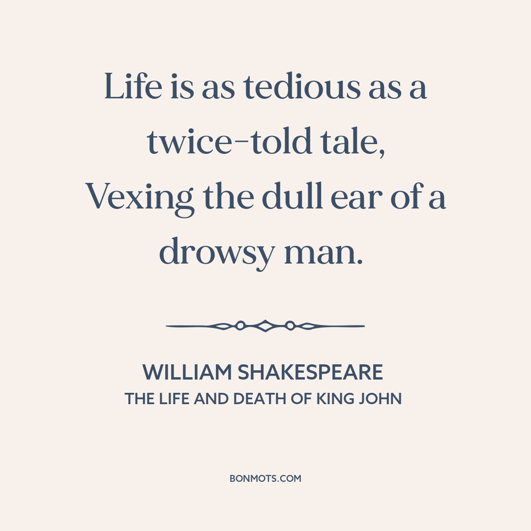 Life is as tedious as a twice-told tale,