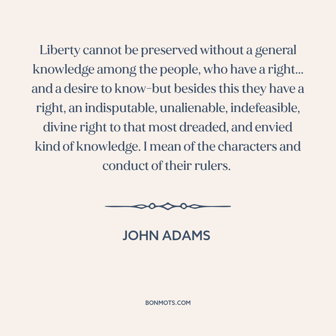 Liberty cannot be preserved without a general knowledge among the people, who have a right... and a desire to know-but besides this they have a right, an indisputable, unalienable, indefeasible, divine right to that most dreaded, and envied kind of knowledge. I mean of the characters and conduct of their rulers.