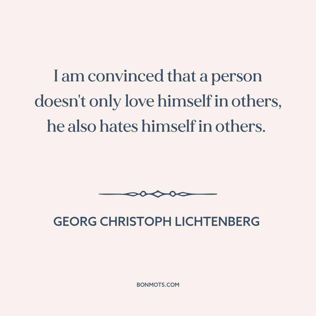 I am convinced that a person doesn't only love himself in others, he also hates himself in others.