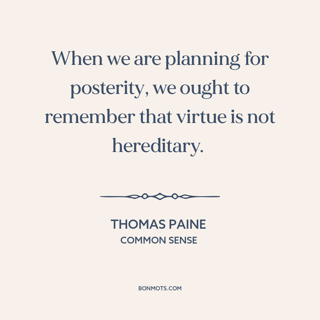 When we are planning for posterity, we ought to remember that virtue is not hereditary.