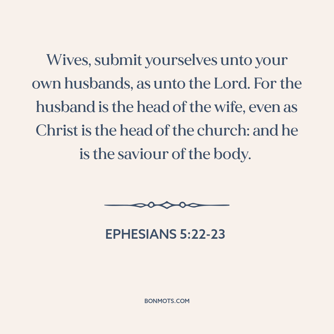 Wives, submit yourselves unto your own husbands, as unto the Lord. For the husband is the head of the wife, even as Christ is the head of the church: and he is the saviour of the body.