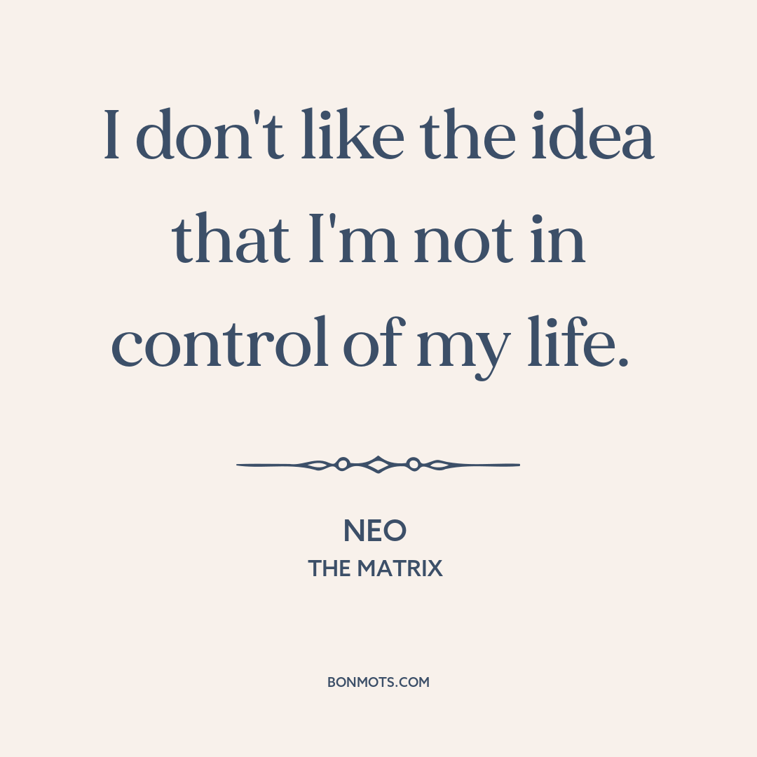 I don't like the idea that I'm not in control of my life.