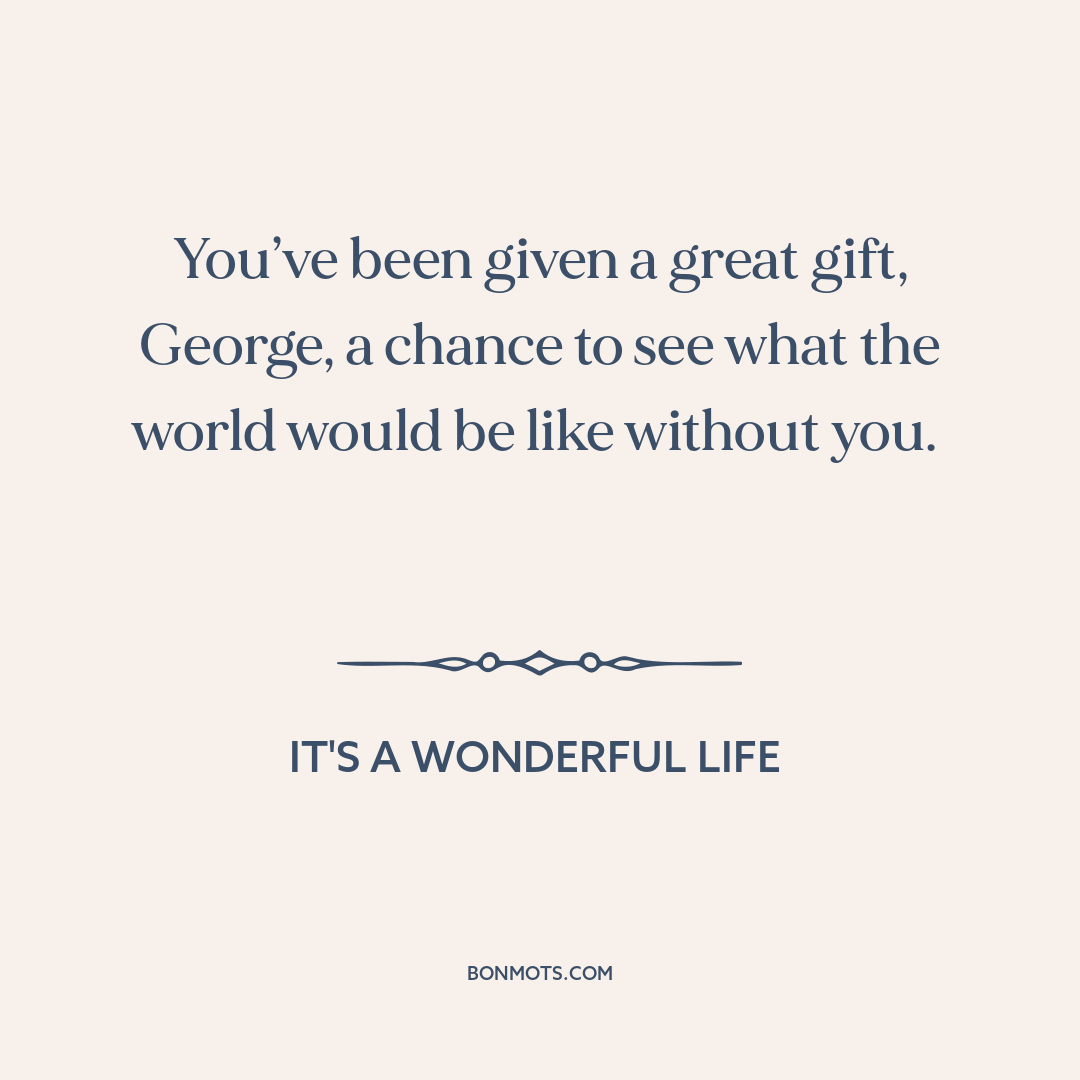You’ve been given a great gift, George, a chance to see what the world would be like without you.