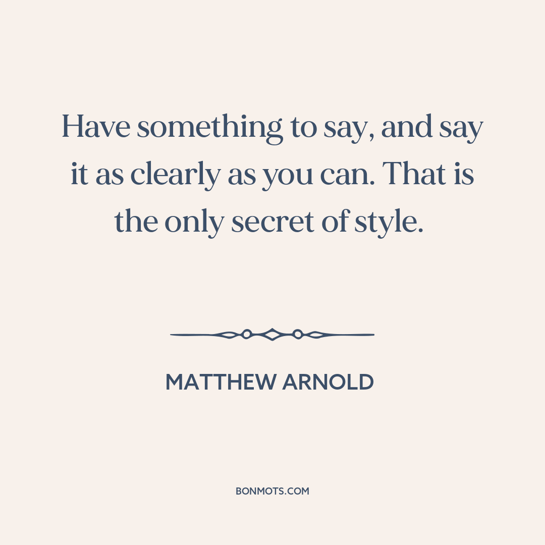 Have something to say, and say it as clearly as you can. That is the only secret of style.