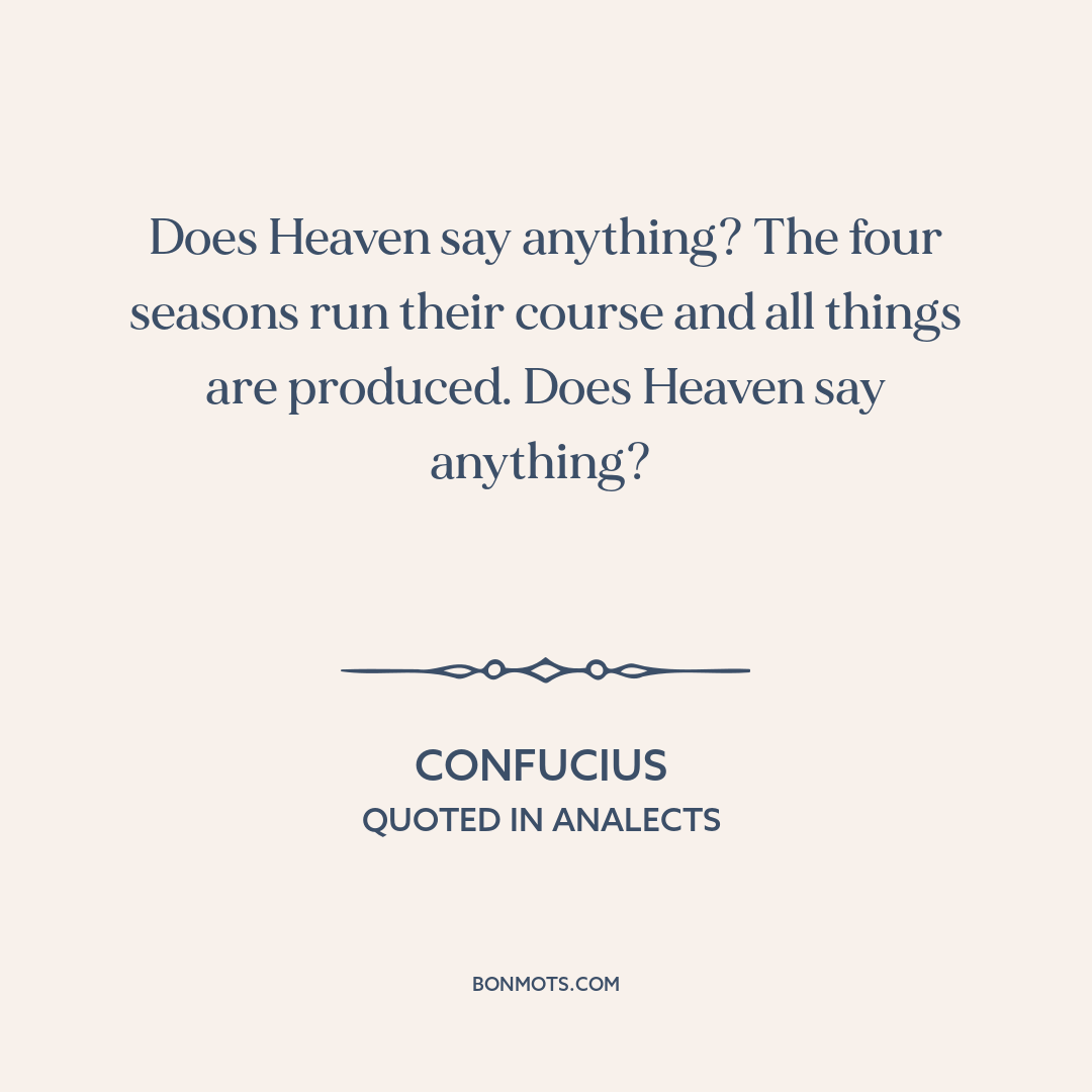 Does Heaven say anything? The four seasons run their course and all things are produced. Does Heaven say anything?