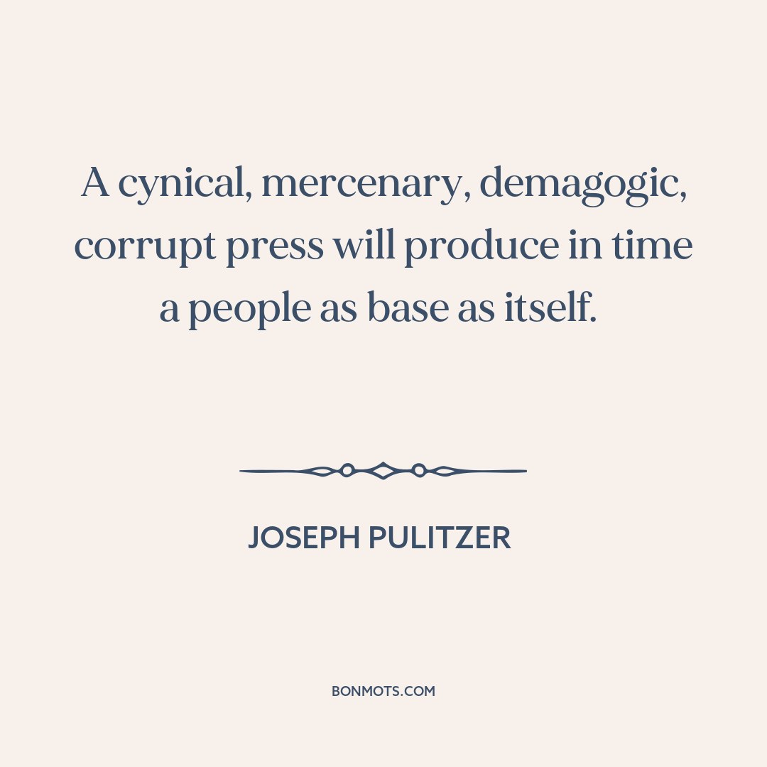 A cynical, mercenary, demagogic, corrupt press will produce in time a people as base as itself.