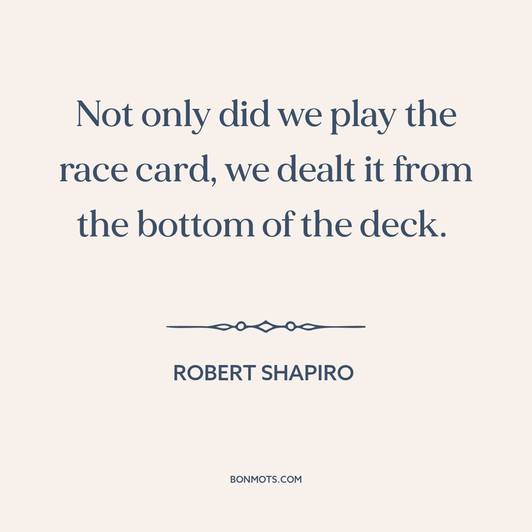 Not only did we play the race card, we dealt it from the bottom of the deck.
