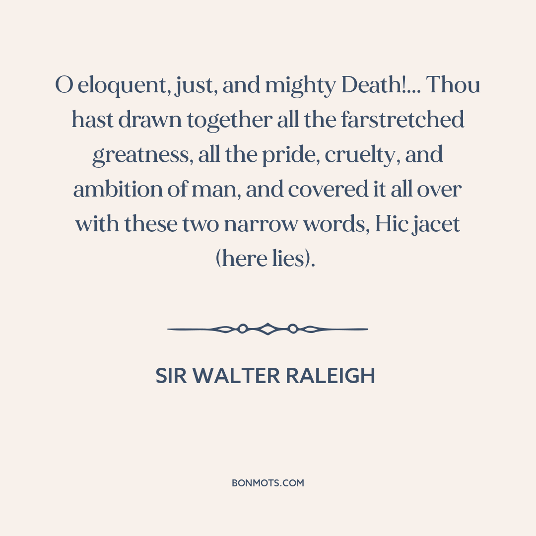O eloquent, just, and mighty Death!... Thou hast drawn together all the farstretched greatness, all the pride, cruelty, and ambition of man, and covered it all over with these two narrow words, Hic jacet (here lies).