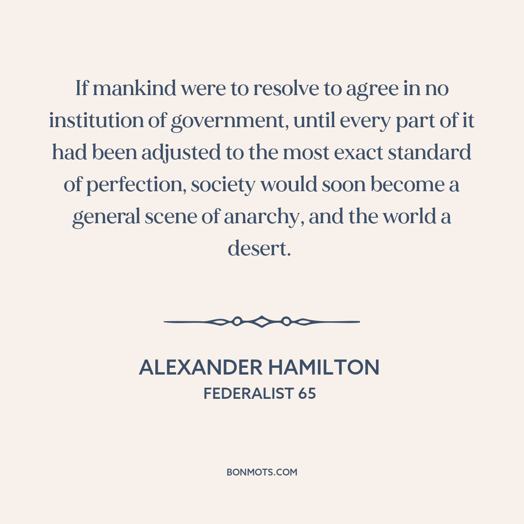 If mankind were to resolve to agree in no institution of government, until every part of it had been adjusted to the most exact standard of perfection, society would soon become a general scene of anarchy, and the world a desert.