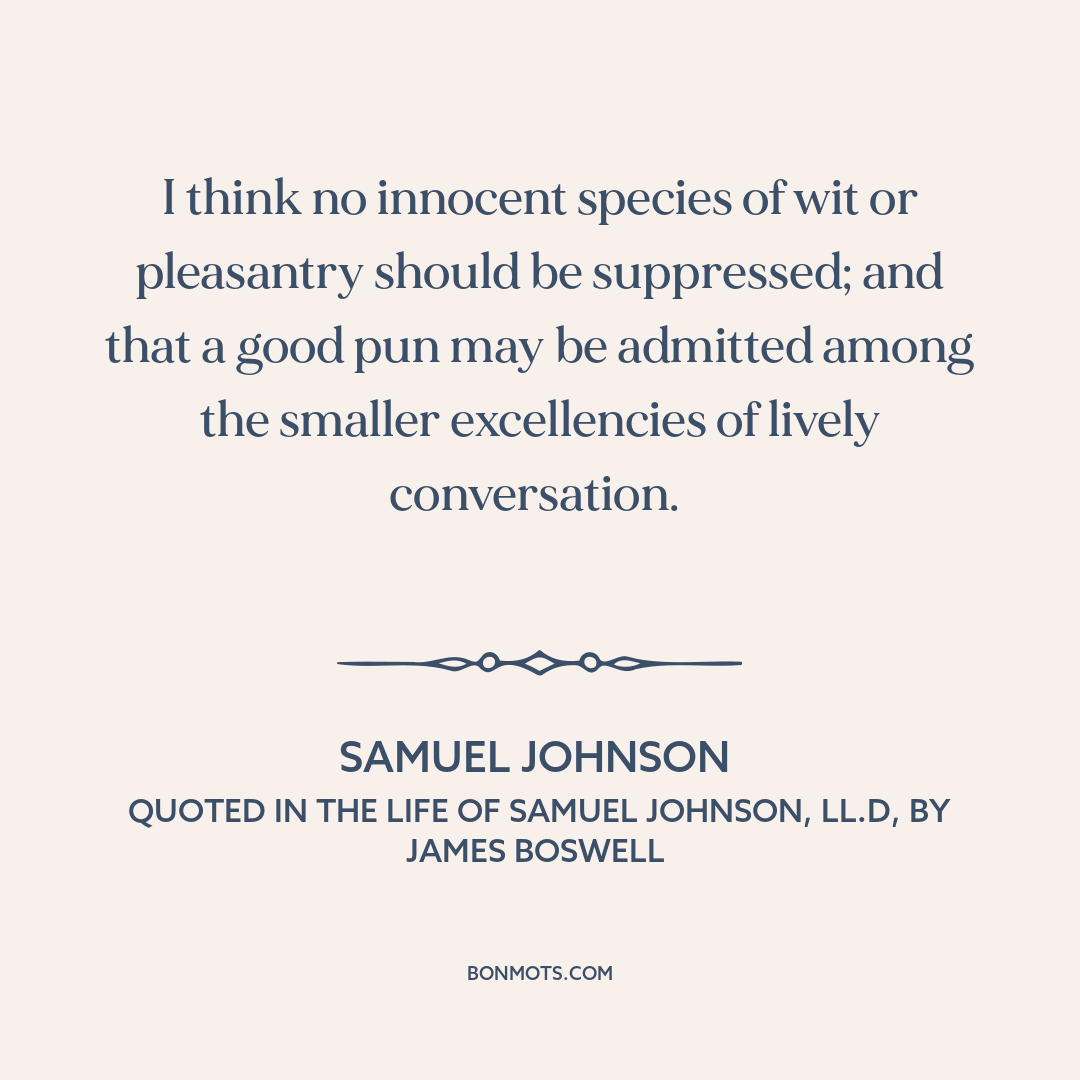 I think no innocent species of wit or pleasantry should be suppressed; and that a good pun may be admitted among the smaller excellencies of lively conversation.