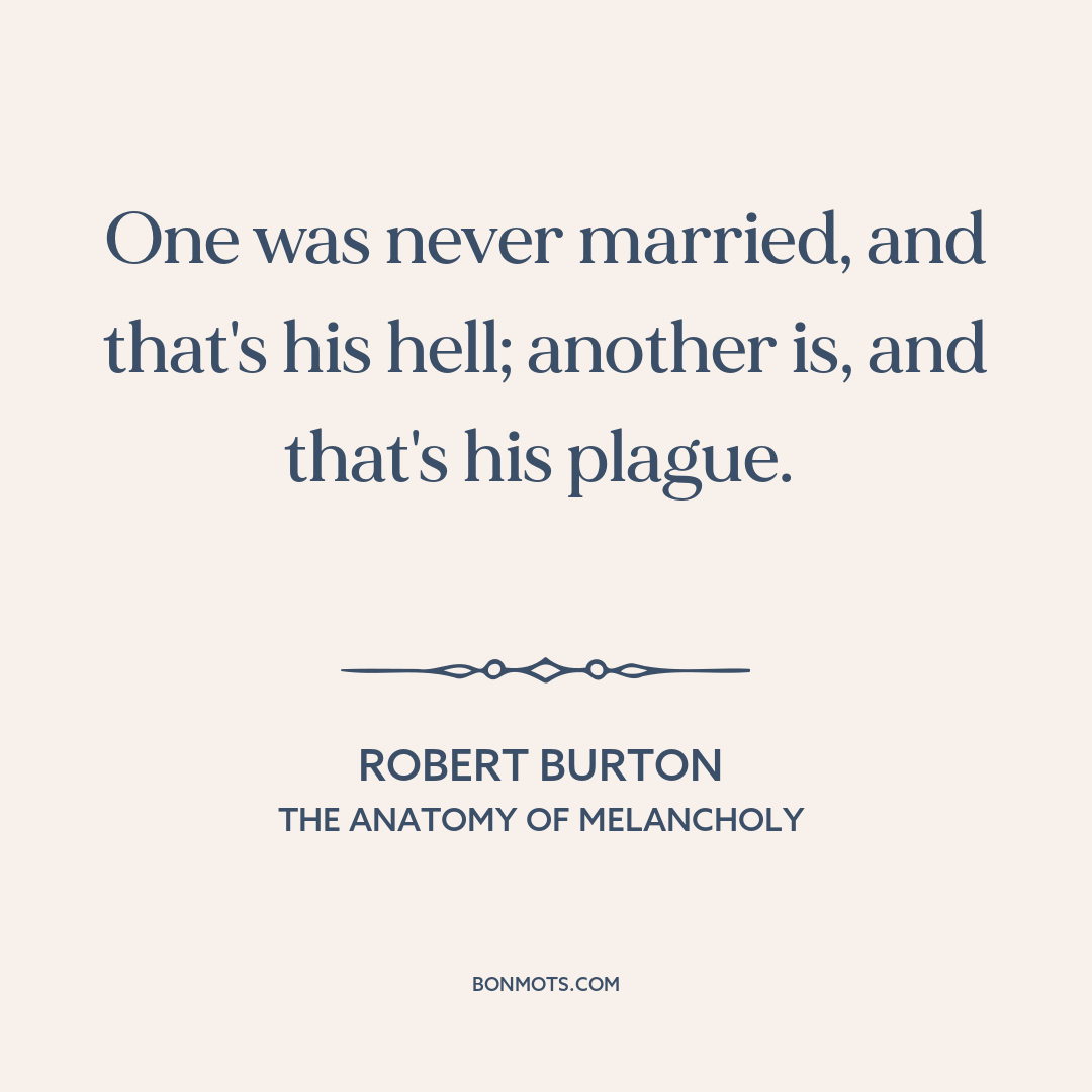 One was never married, and that's his hell; another is, and that's his plague.