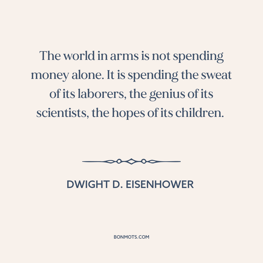 The world in arms is not spending money alone. It is spending the sweat of its laborers, the genius of its scientists, the hopes of its children.