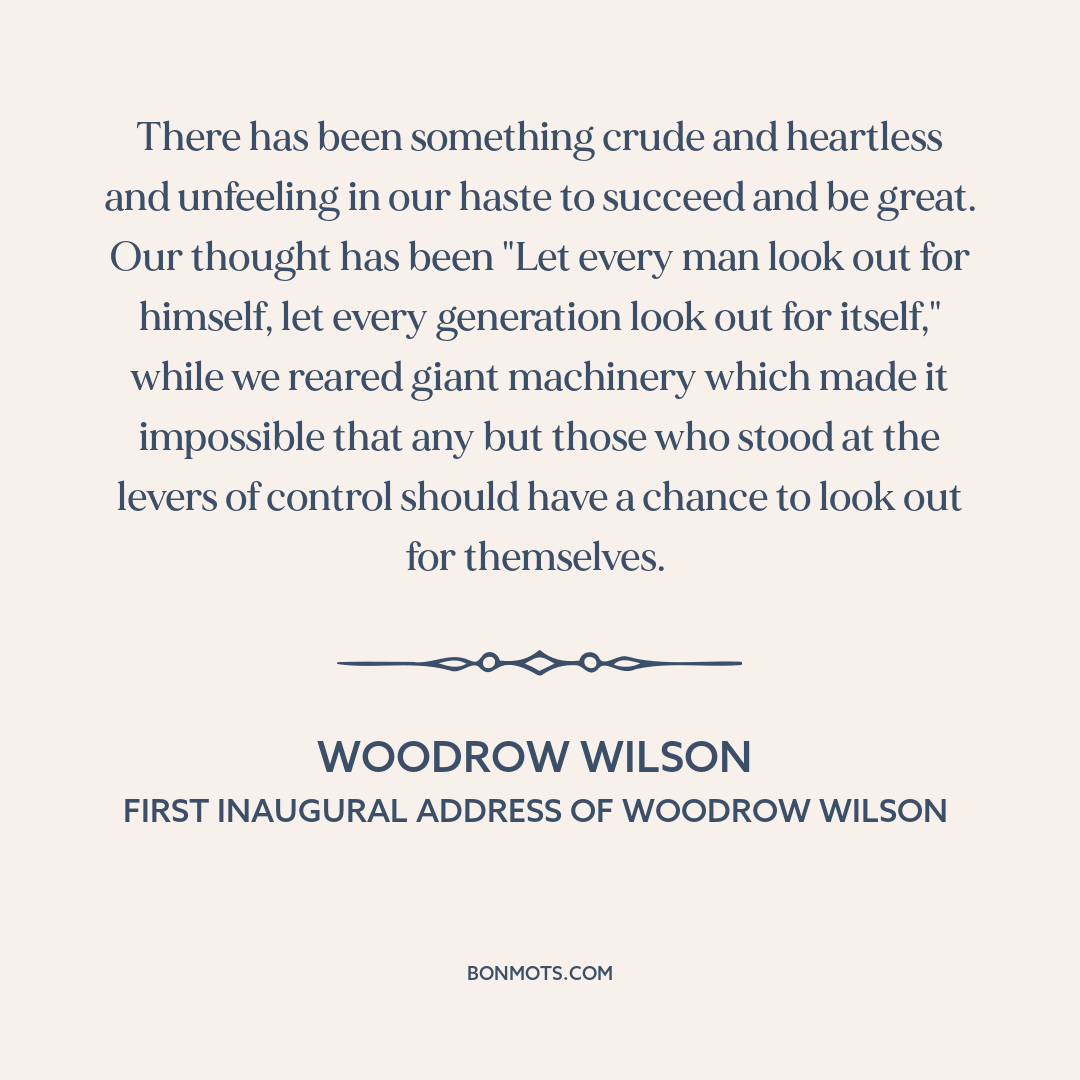 There has been something crude and heartless and unfeeling in our haste to succeed and be great. Our thought has been "Let every man look out for himself, let every generation look out for itself," while we reared giant machinery which made it impossible that any but those who stood at the levers of control should have a chance to look out for themselves.