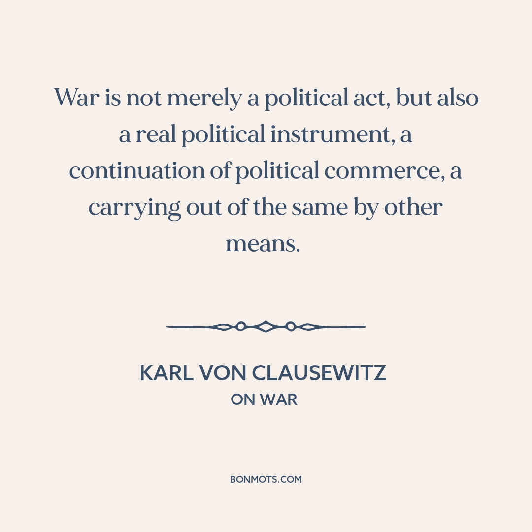 War is not merely a political act, but also a real political instrument, a continuation of political commerce, a carrying out of the same by other means.