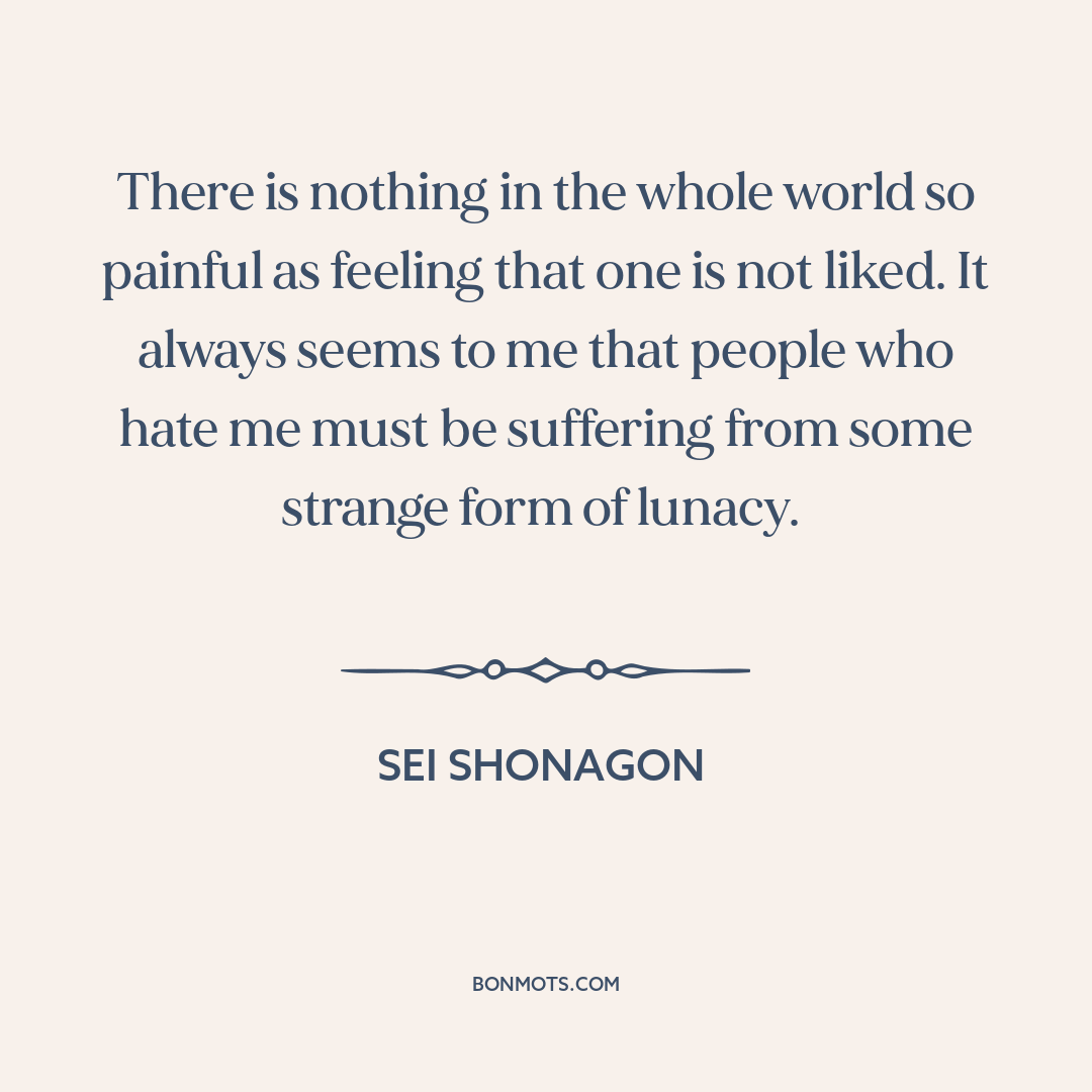 There is nothing in the whole world so painful as feeling that one is not liked. It always seems to me that people who hate me must be suffering from some strange form of lunacy.